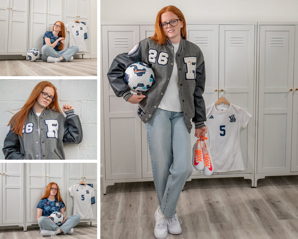 Introducing the beautiful Emma Nelson from Rootstown High School! Emma found her way to us through her younger sister, Keegan, who’s part of our teen team—so it was extra special getting to work with another amazing member of their family. Her session took place right here in downtown Ravenna, where we explored some unique spots around the studio before heading inside for a cool, customized sports setup. We then made our way to the soccer field to finish off the session, capturing Emma in her element. Since soccer is such a big part of who she is, it was important to highlight her passion and make it a central part of her senior photos—and she absolutely rocked it!